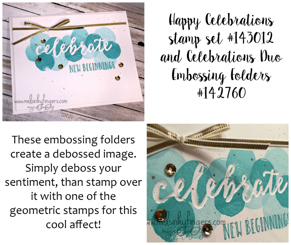 The affect you get after stamping over the top of the debossed image is amazing! The best part is, when the Celebrations Duo embossing folders are combined with the coordinating Happy Celebrations stamp set, the possibilities are endless!
